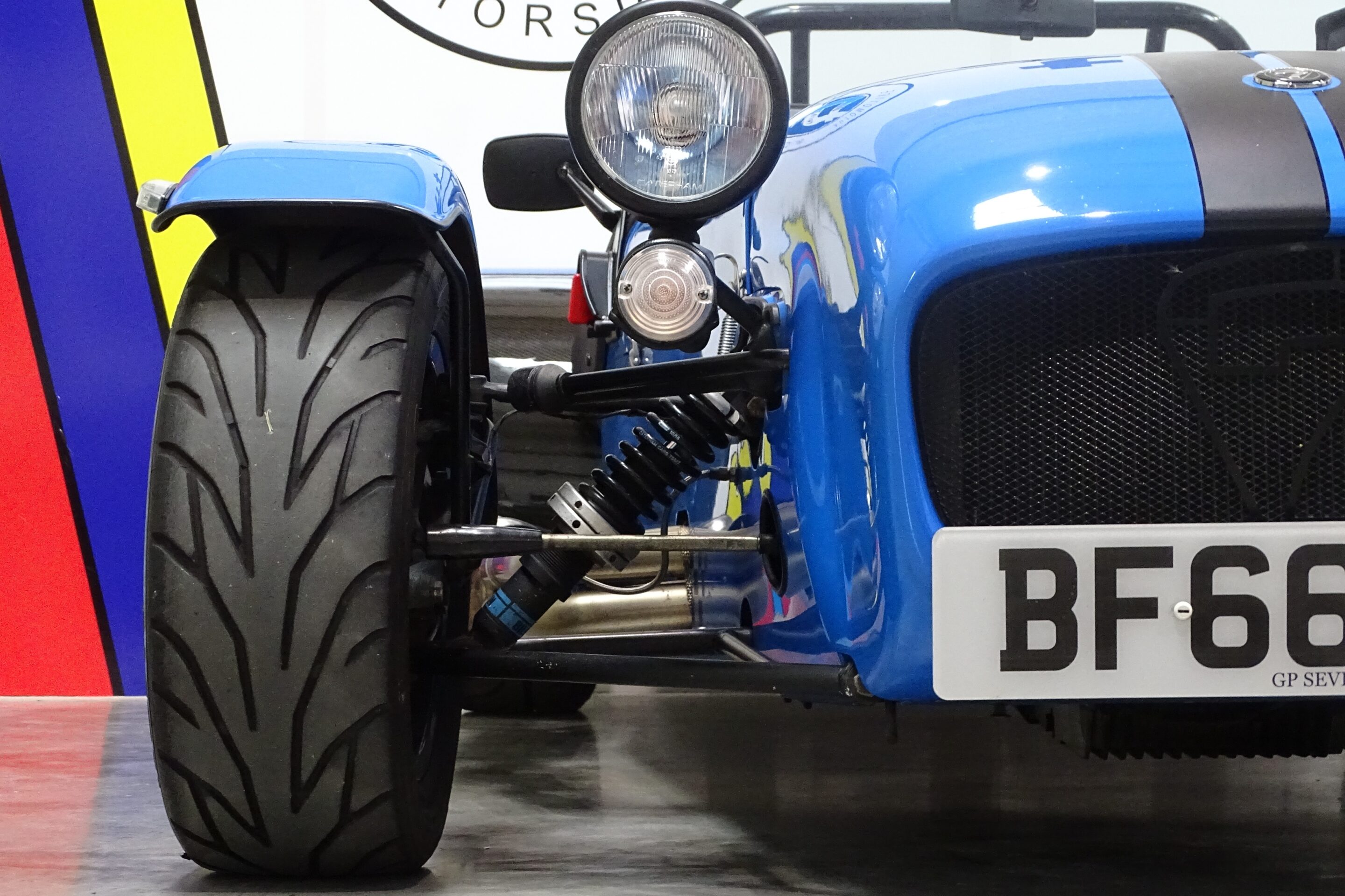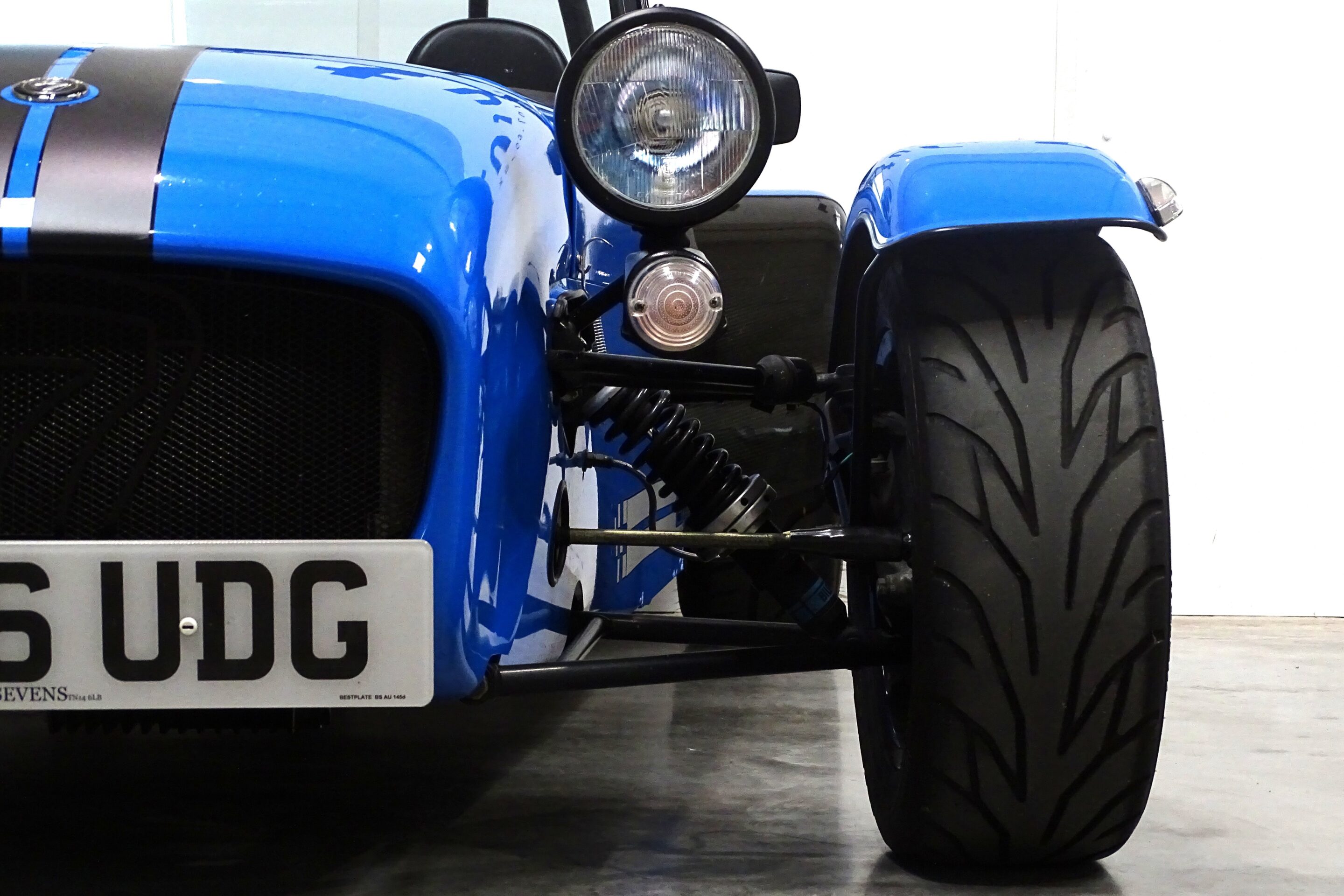 This larger chassis’d SV example has been painted in Jaguar French Racing Blue, and completed with black Superlight stripes. Riding on 13″ black and diamond cut Apollo alloys, this car certinaly looks the part, and handles just as well as it looks. With just over 10,000 miles on the clock, it is an excellent, well cared for and low mileage example of one of Caterhams most usable models.