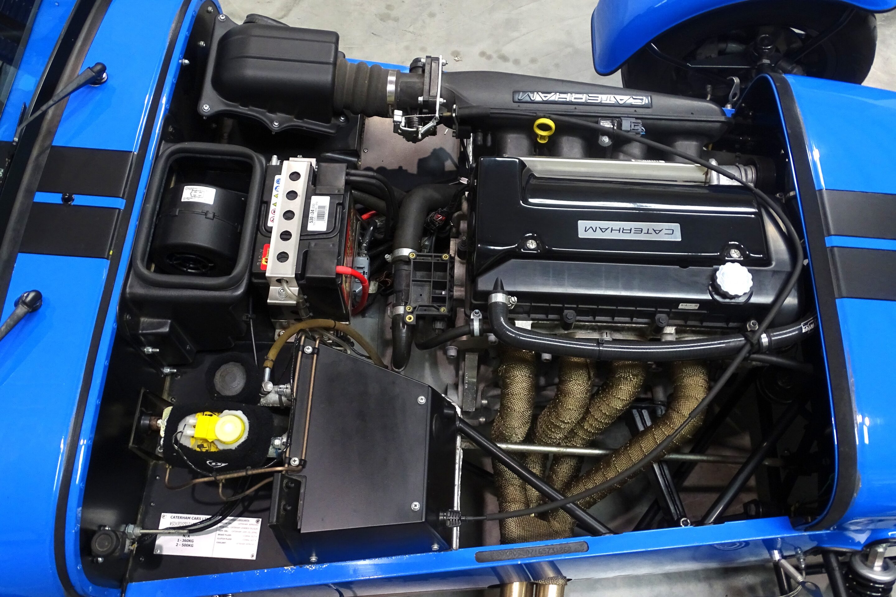 The 360 represents Caterham’s entry point to the 2.0L Ford Duratec engine, producing 180bhp. The power delivered by this engine is very smooth and linear, with considerably more lower and mid-range torque than the 1.6 Sigma engines below it in Caterham’s range. Unlike its bigger brothers, however, the 360 is not a very cammy engine, with max performance all dealt with below 7000rpm. This means that where its bigger brothers, like the 420 for example, have a surge in power high up in the rev range, the 360 engine does not, and offers a calmer, more progressive driving experience.