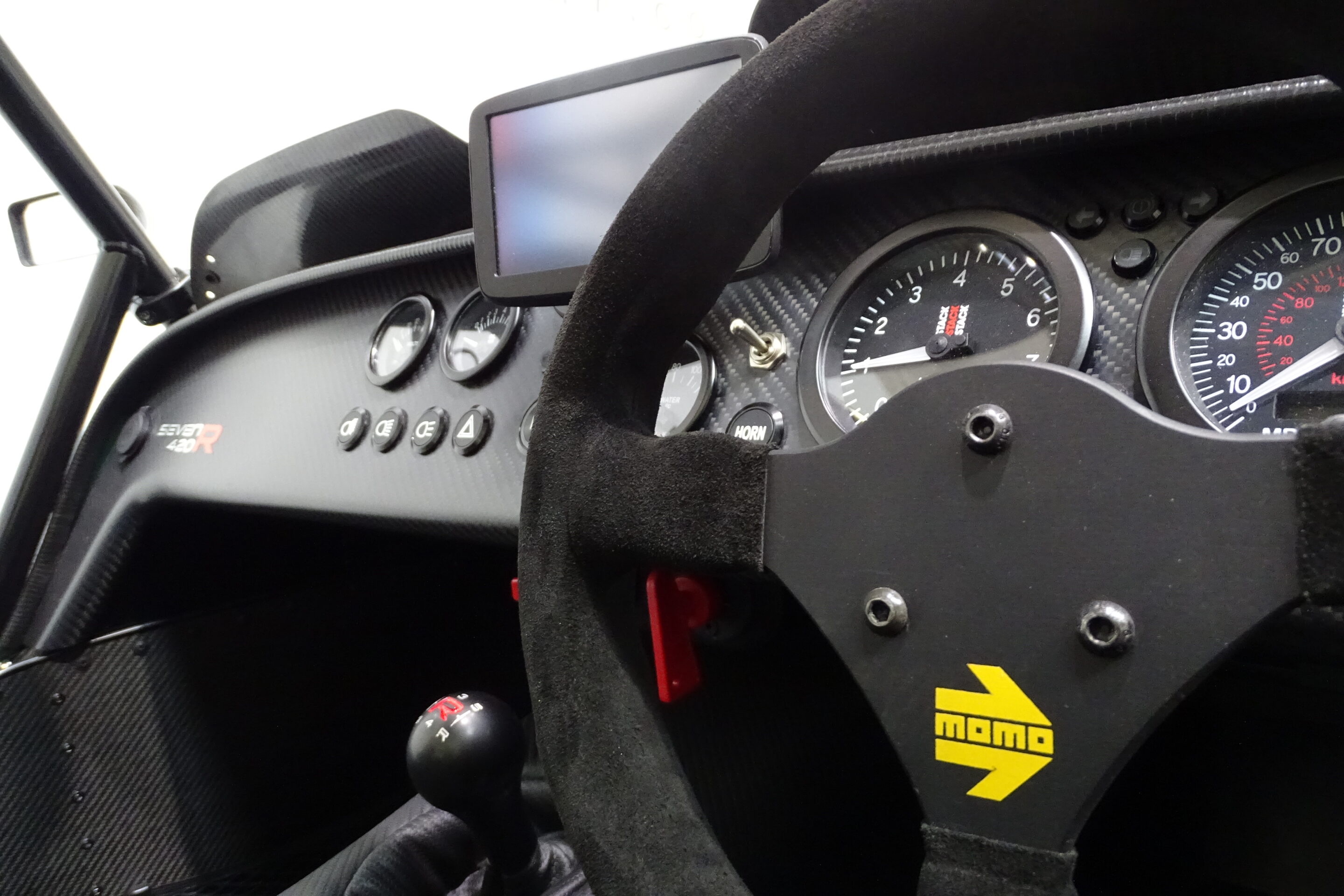 Custom carbon fibre dashboard with complete STACK instruments