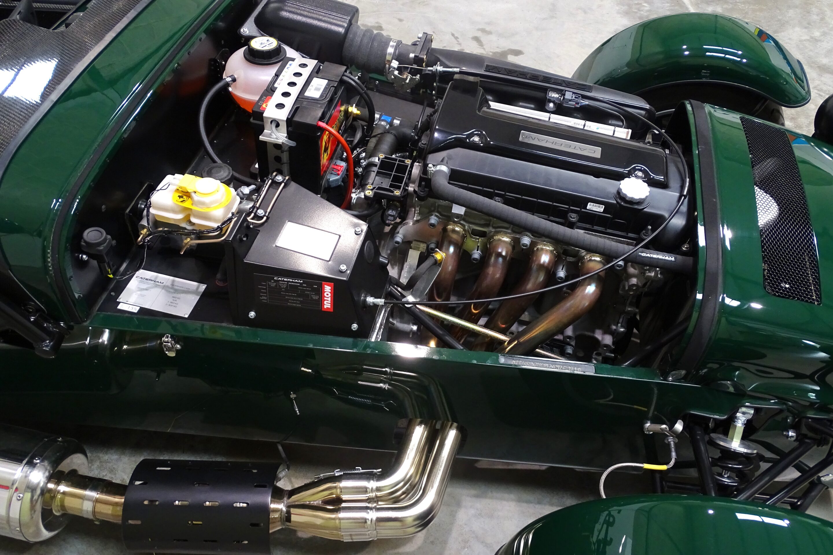 After just a few hundred miles, it’s original owner decided that Caterham’s standard dash instruments just weren’t up to scratch, and totally replaced the lot with an exceptionally well thought out and executed new dashboard. He also removed the standard Caterham Titan plated limited slip differential and replaced it with a Quaife built ATB differential, significantly cutting down on unwanted transmission noises.