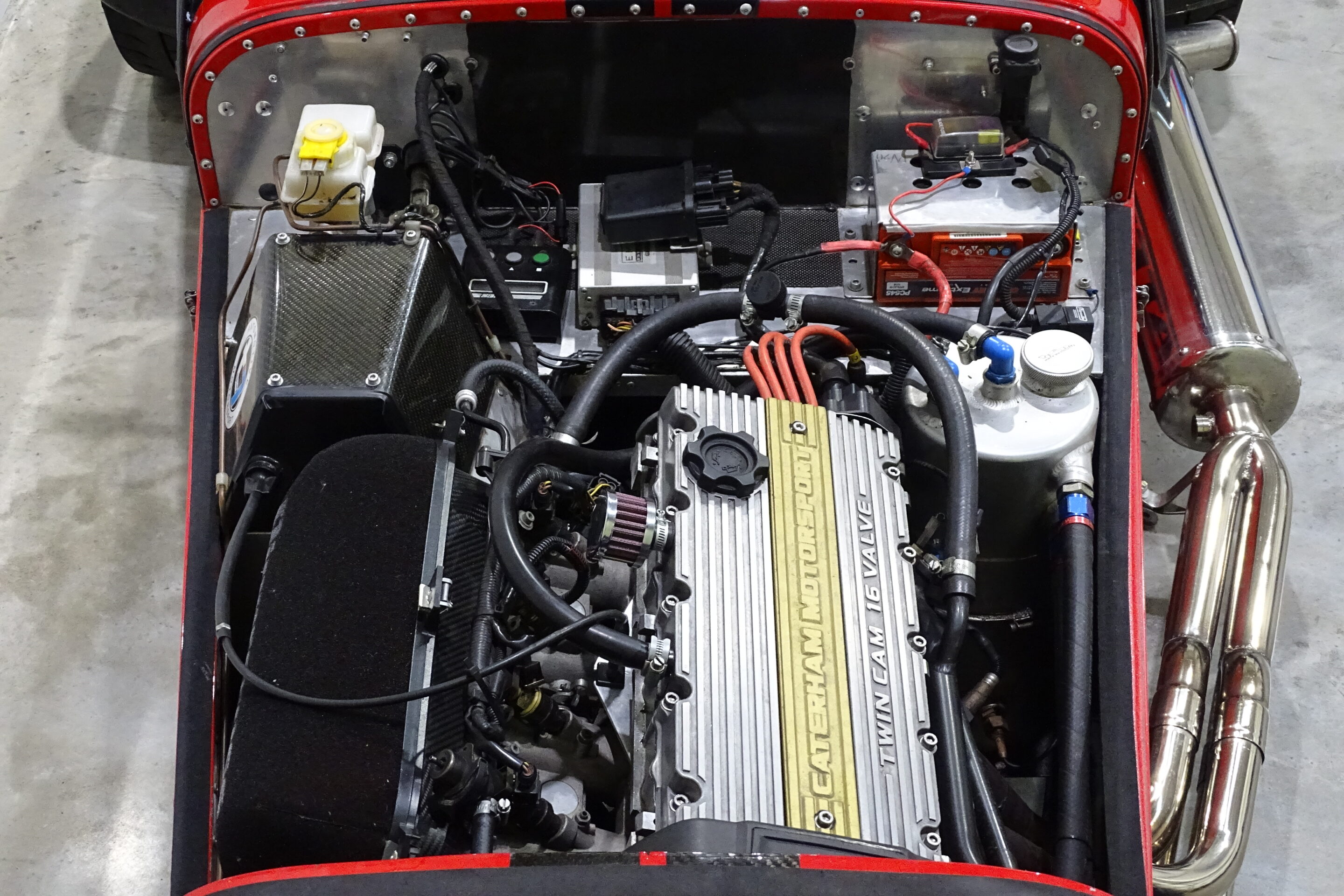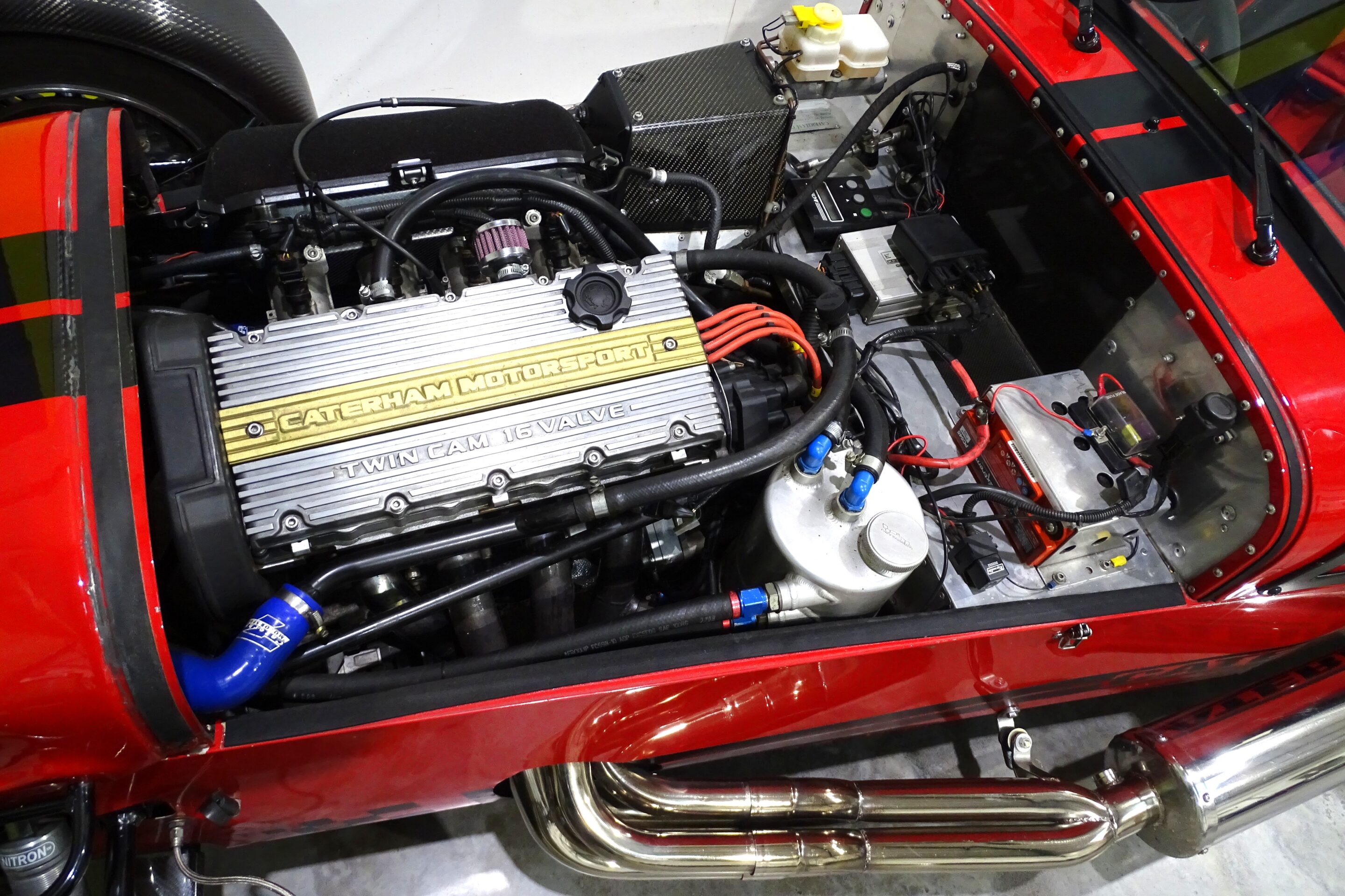 This Supersport started its life a traditional Post Box Red Caterham with a 1.6l K-series engine and 135bhp. It had its first major upgrade in the late 00’s, where the owner of the time went to work on the engine, adding throttle bodies and the aftermarket ECU. From there the little Supersport grew into the work of art it is today.