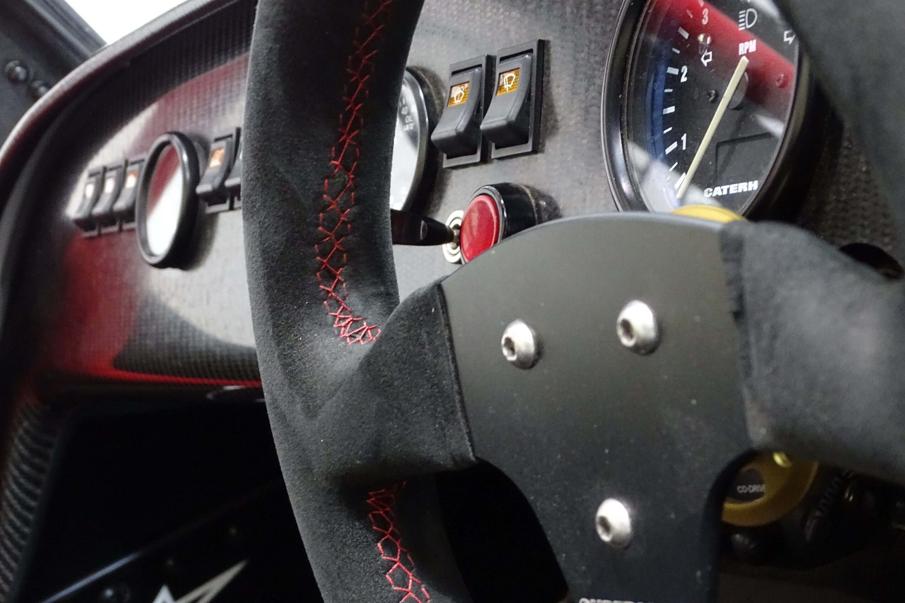 Suede MOMO steering wheel with red stitching