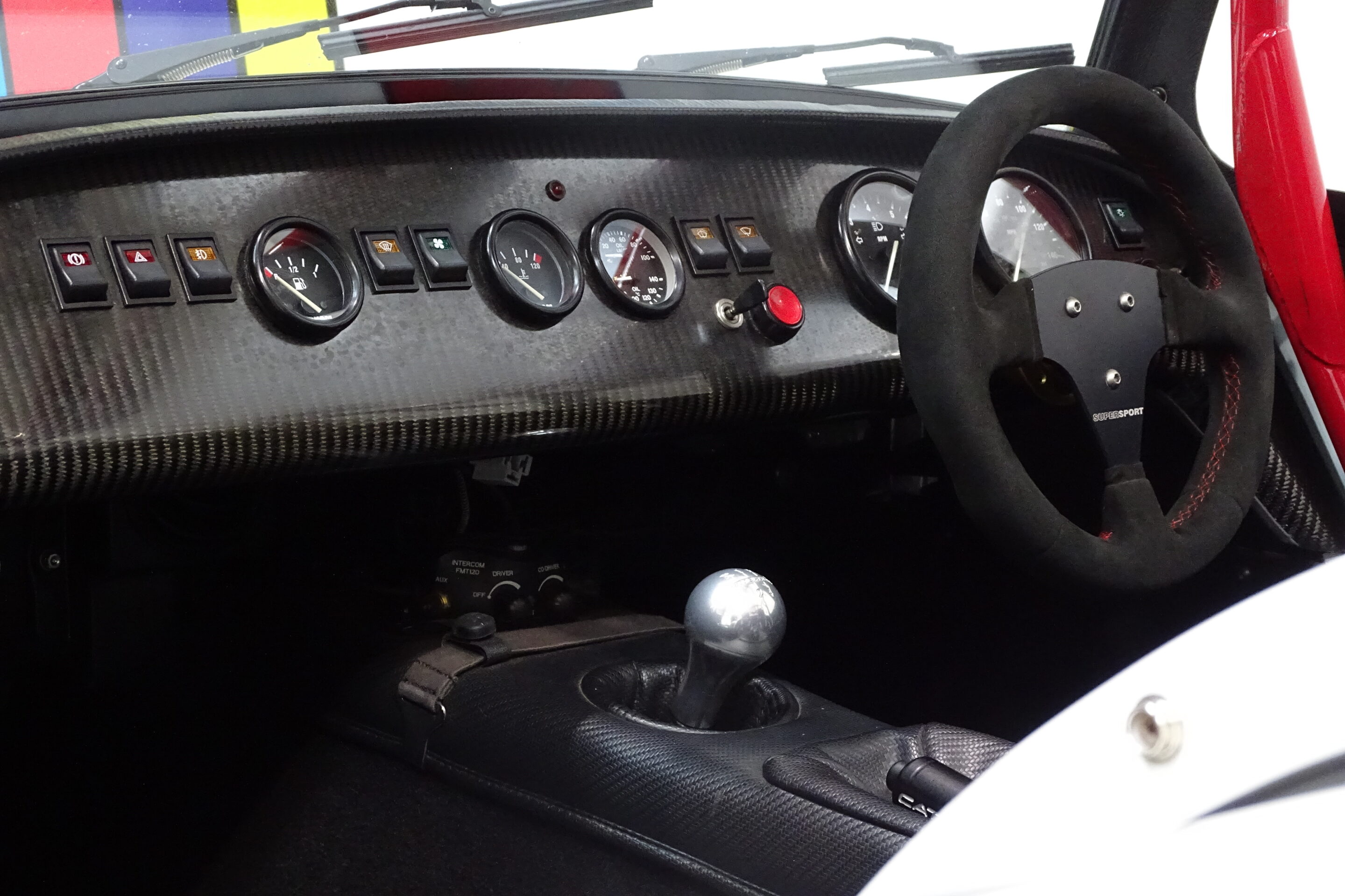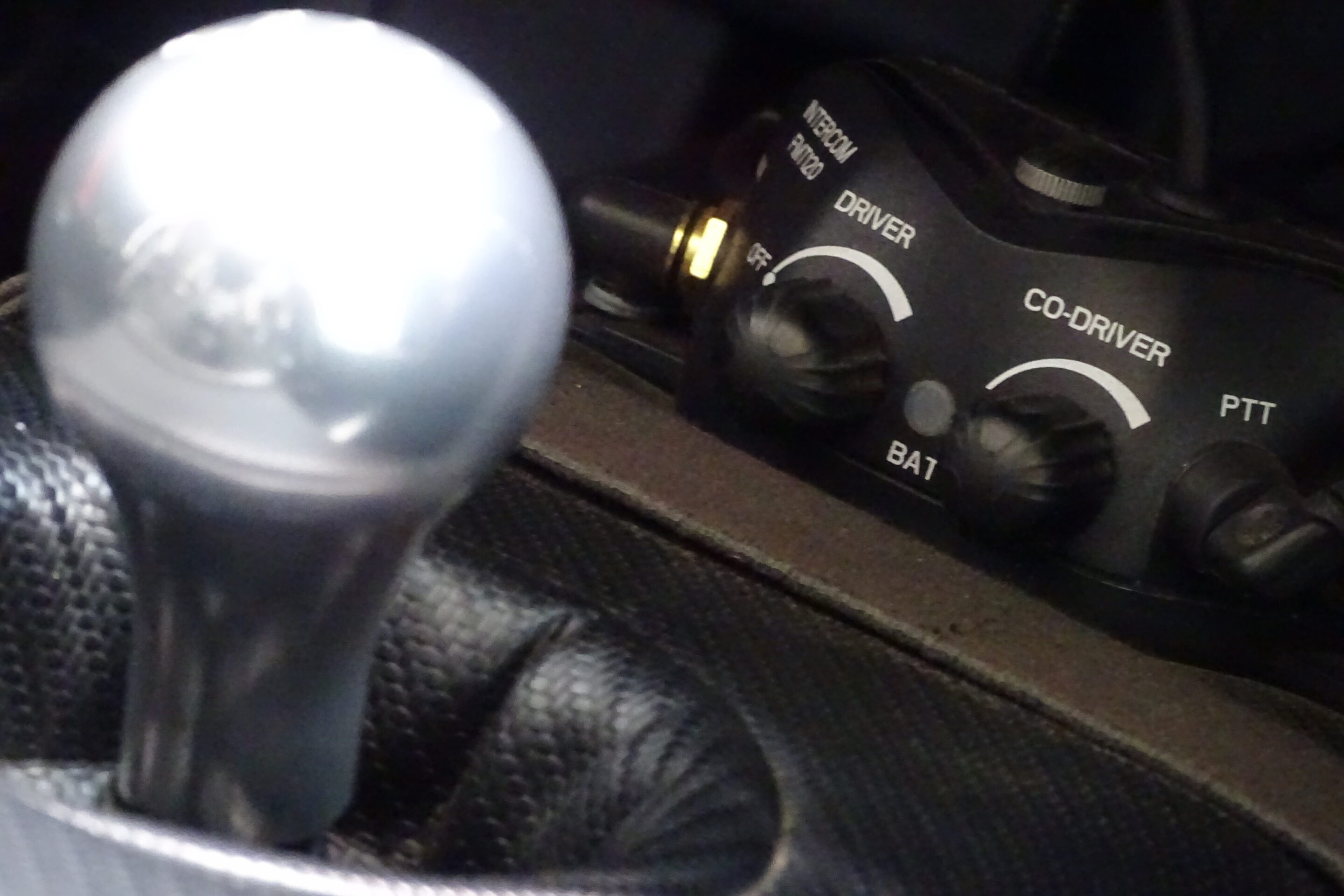 Another lovely little touch, is the Peltor intercom system fitted neately under the dash. This allows the driver and the passenger to talk to eachother perfectly via noise cancelling headphones, as well as the ability to attach either a phone or a radio to it to communicate with other cars.